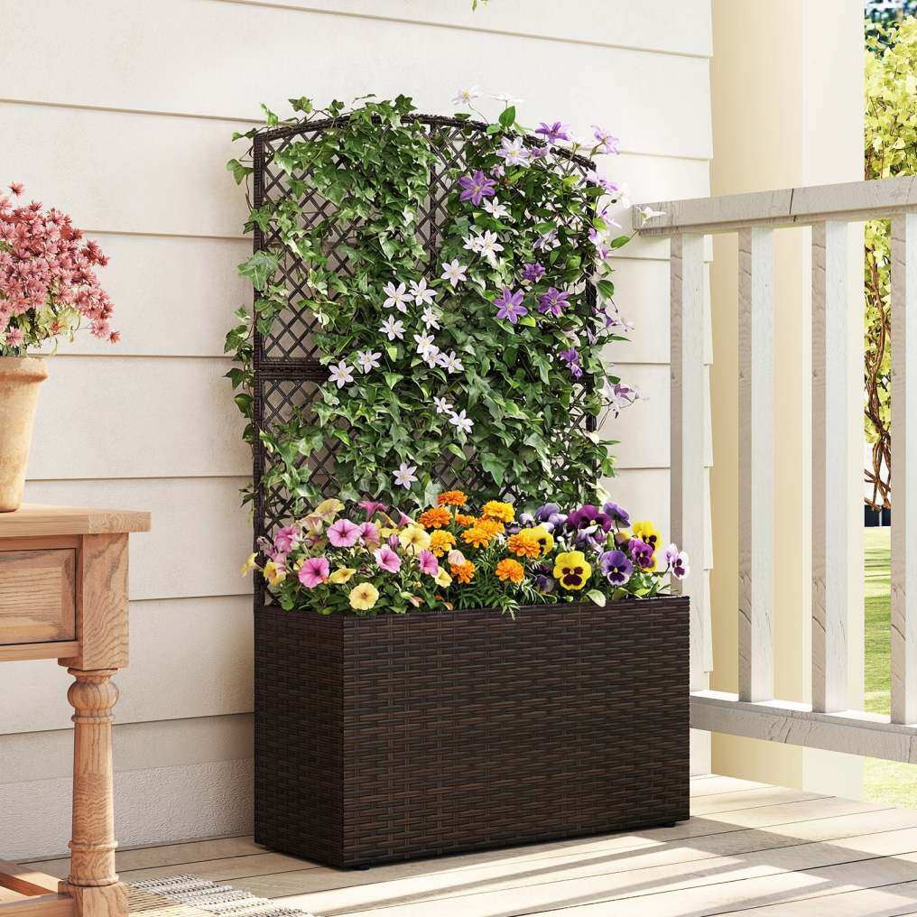 Ample Planting & Displaying Space: The planter box with trellis beckons a multitude of beautiful climbers and edibles, from tomatoes, roses, and vines to hanging baskets. It is designed to create a lush display perfect for relaxing or entertaining on any outdoor balcony or patio.