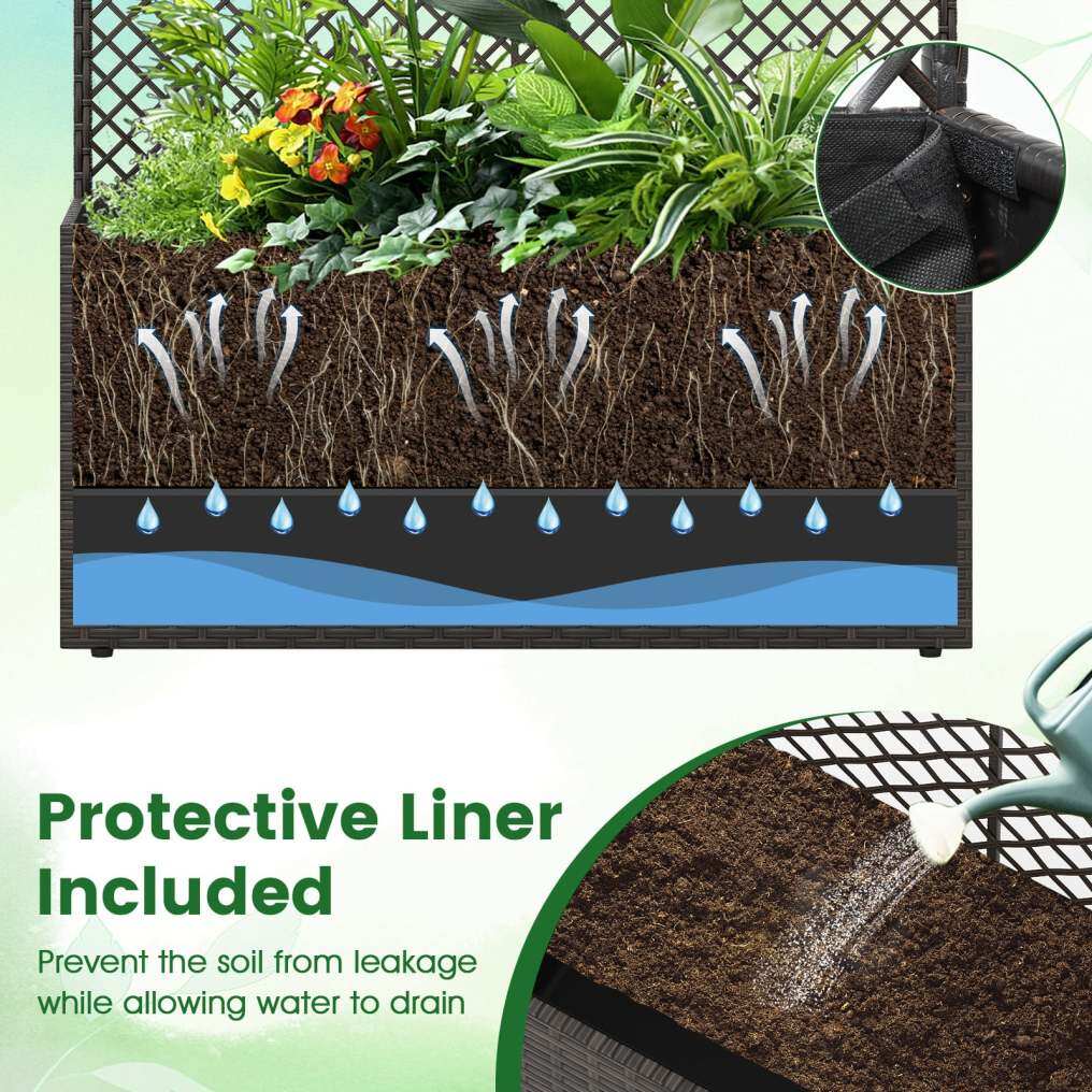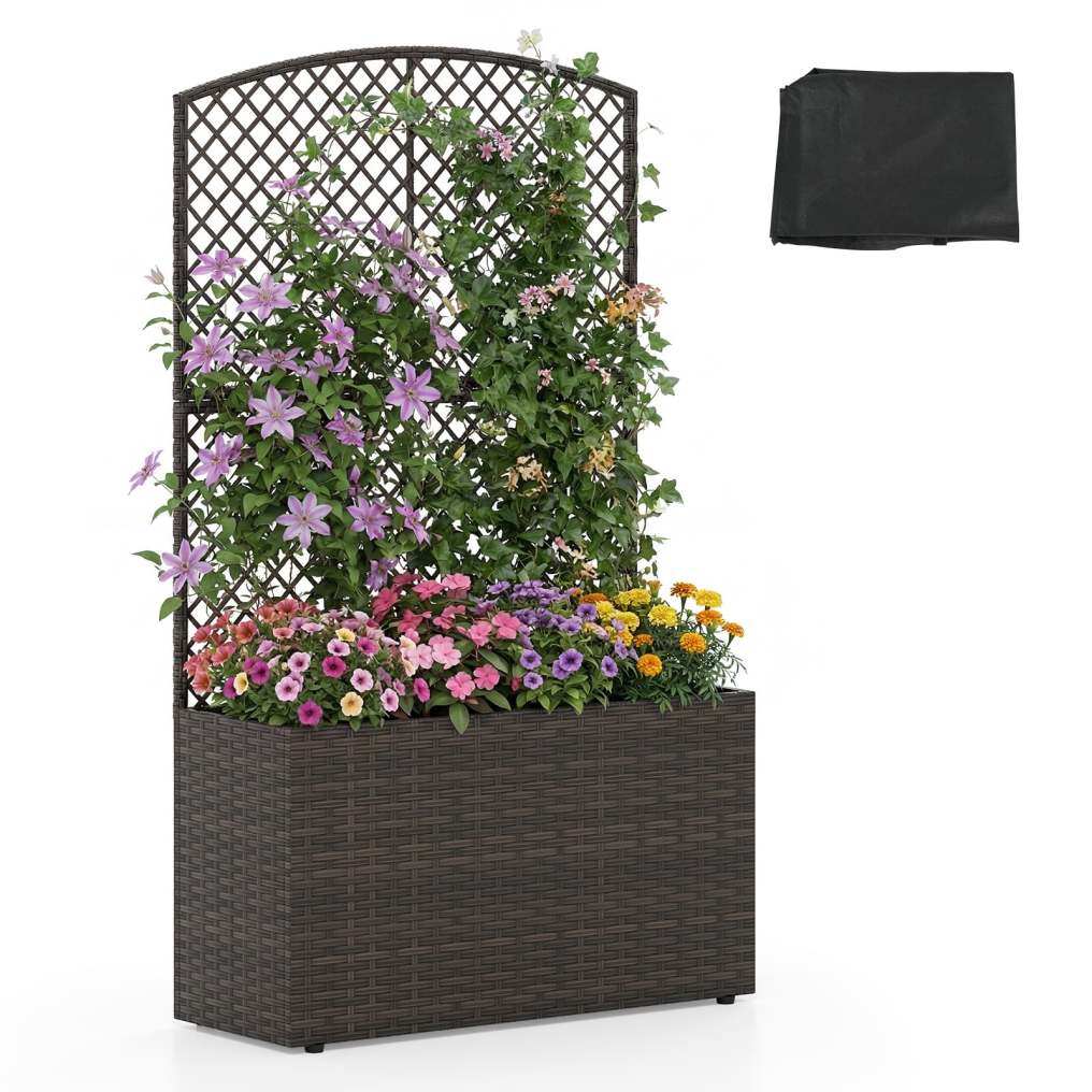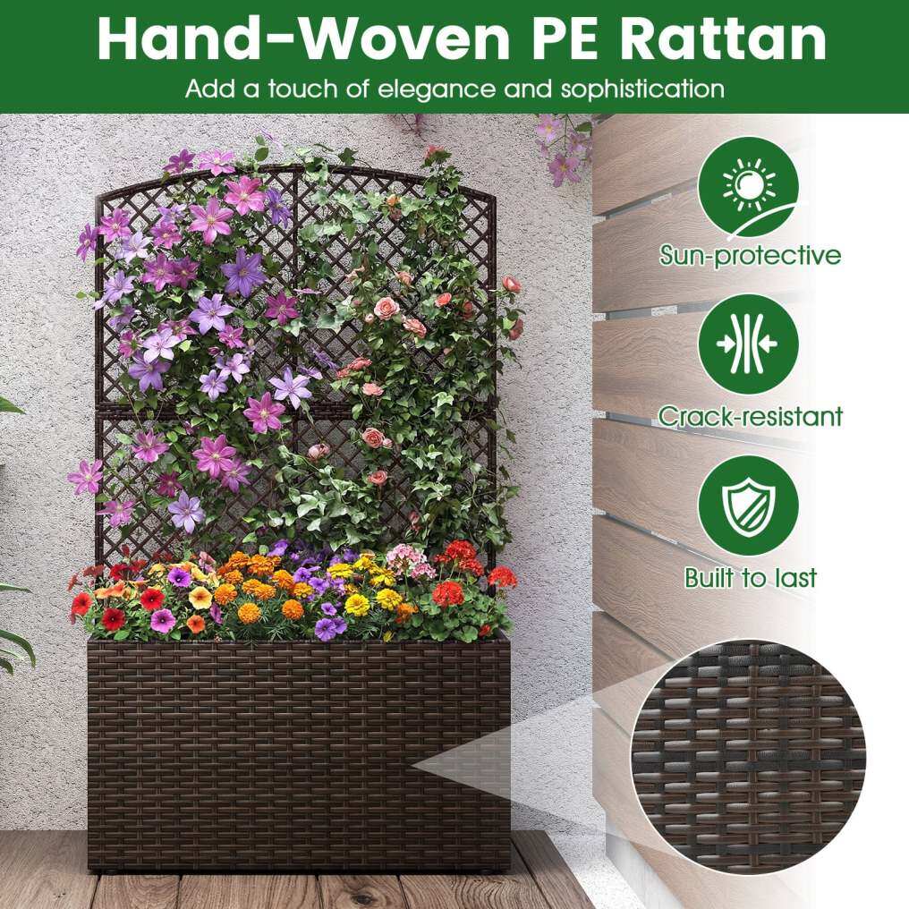 49 Inch Raised Garden Bed with Trellis and Wicker Planter Box-Brown