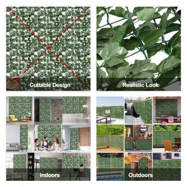Easy to Maintain Clean: Faux Ivy leaf hedge is eco-friendly and will not release smelling odor that is harmful for your families. Plus, It can be washed with a garden hose and then become as new as you just bought. No require of any special care.