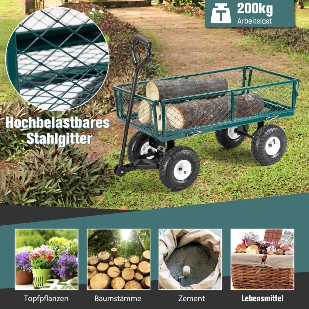 Its steel mesh crate with powder-coated finish for durability and corrosion resistance. The foldable frame design for flatbed use with oversized loads and it's easy to assemble and disassemble the cart. Its handle is also equipped with a rubber grip for comfortable hand placement while steering.