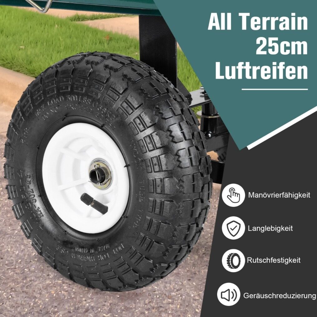 - Comes with durable 10-inches diameter air-filled rubber wheels to absorb shock and make sure roll easily over rough terrain