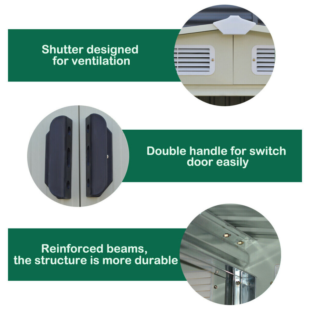 It is equipped with two sliding doors and four ventilation windows placed high to ensure security and adequate ventilation. So items that are kept in this well-designed storage building get plenty of fresh air while being protected from the elements. The garden shed is very simple to assemble. Easy-to-follow instructions, pre-drilled holes ,extra parts and clearly labeled components ensure a hassle-free experience for everyone. It makes outdoor storage convenient, attractive and affordable.