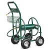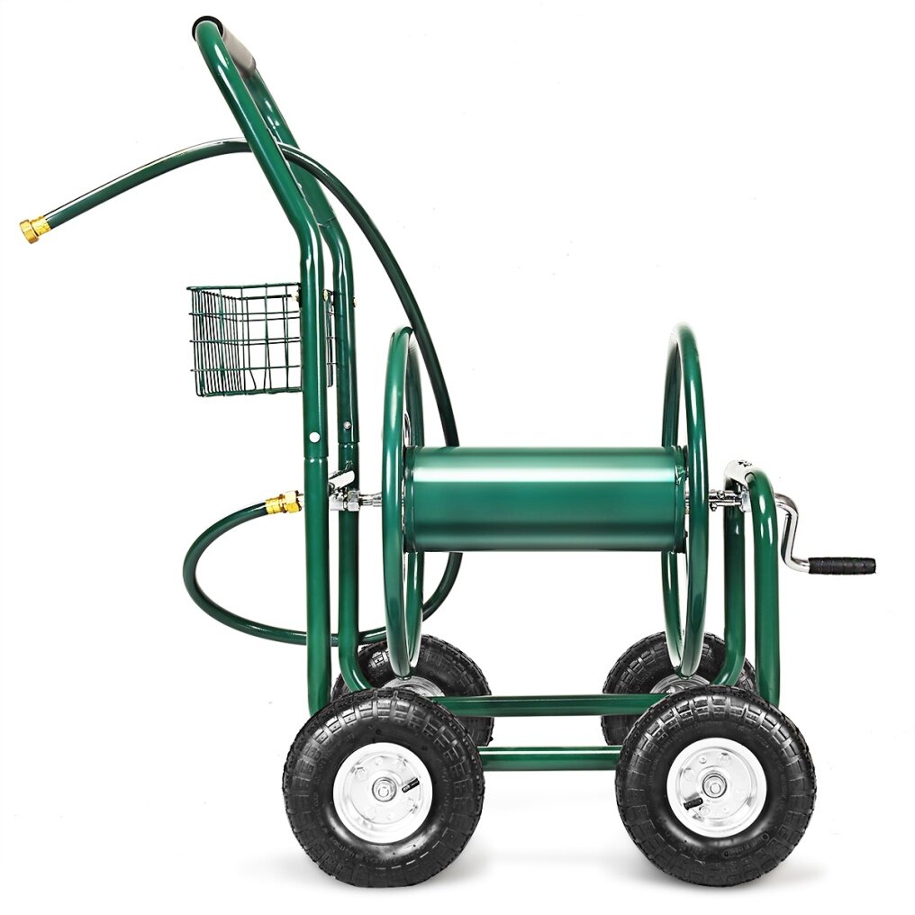 ● Ideal for Different Terrain of Versatile Usage: This garden water hose reel cart is suitable for a variety of terrains, such as gardens, lawns, sidewalks, and backyards. With its large capacity and powerful pneumatic tires, this cart can run smoothly on any surface. In addition, the lightweight design and the built-in basket provide additional storage space for your gardening tools.