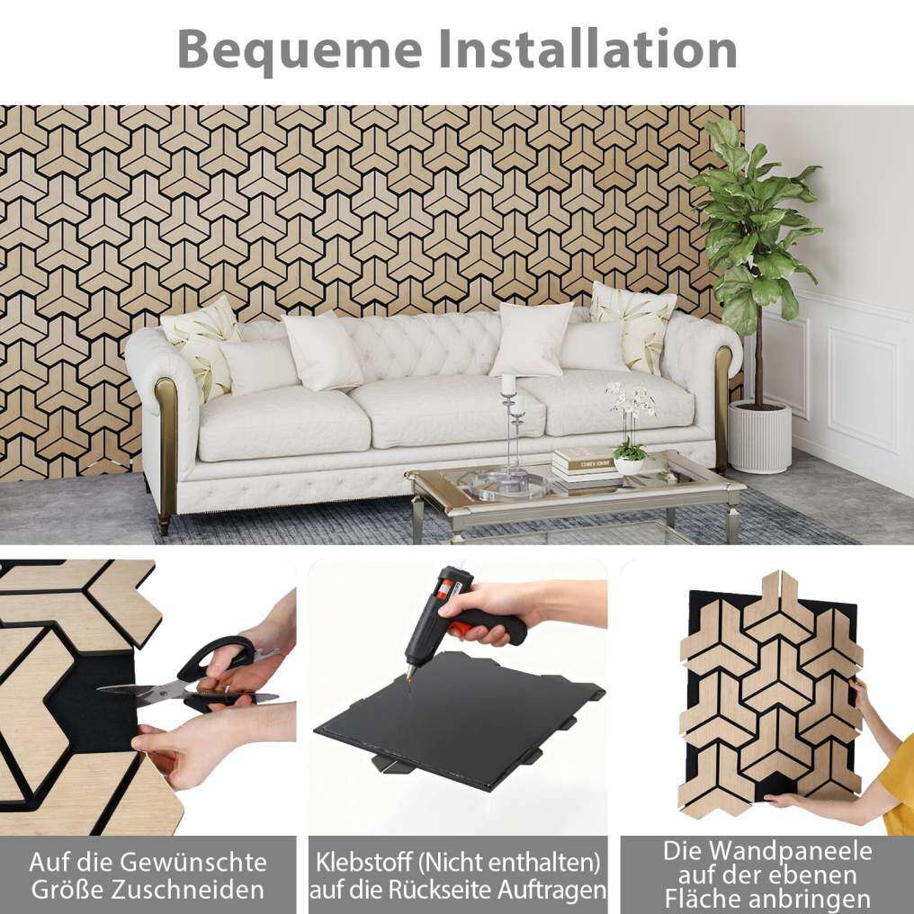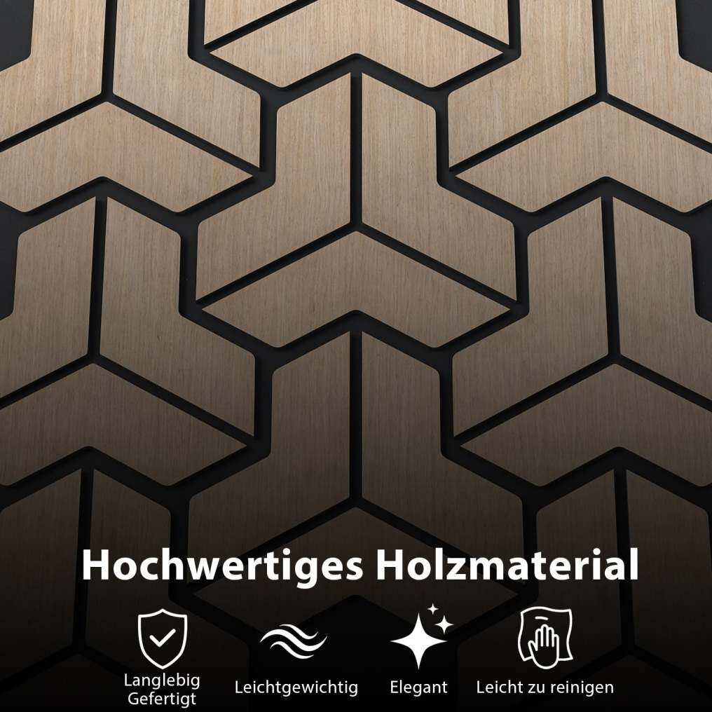 Enhance the tranquility and aesthetics of your space with these acoustic panels! The stylish, wood-like surface of these sound-absorbing wall panels not only improves the appearance but also blends seamlessly into various interior design styles. Furthermore, these high-quality sound-insulating panels combine thick MDF boards, PET acoustic foam, and a natural wood veneer to achieve excellent sound absorption and effectively reduce mid- to high-frequency noise – for a peaceful indoor environment. Installation is simple and takes only three steps: cut to size, apply adhesive, and attach, ensuring both durability and easy maintenance by simply wiping with a soft cloth. Additionally, the cut-out patterns of these decorative interior panels add a creative touch to any room and enhance its functionality.