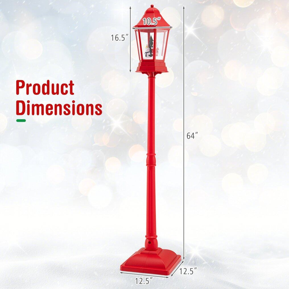 5.3 Feet Musical Christmas Street Lamp with Blowing Snow and LED Lights-Red