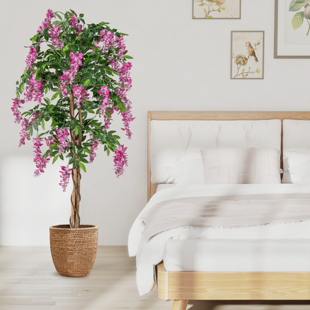 ● Reliable Materials: Crafted with premium polyester flowers and leaves, this faux wisteria tree is not only safe but also reliable, ensuring long-lasting beauty in your home. Moreover, it is supported by a stable flowerpot with built-in cement, keeping the tree stands firm and wobble-free.