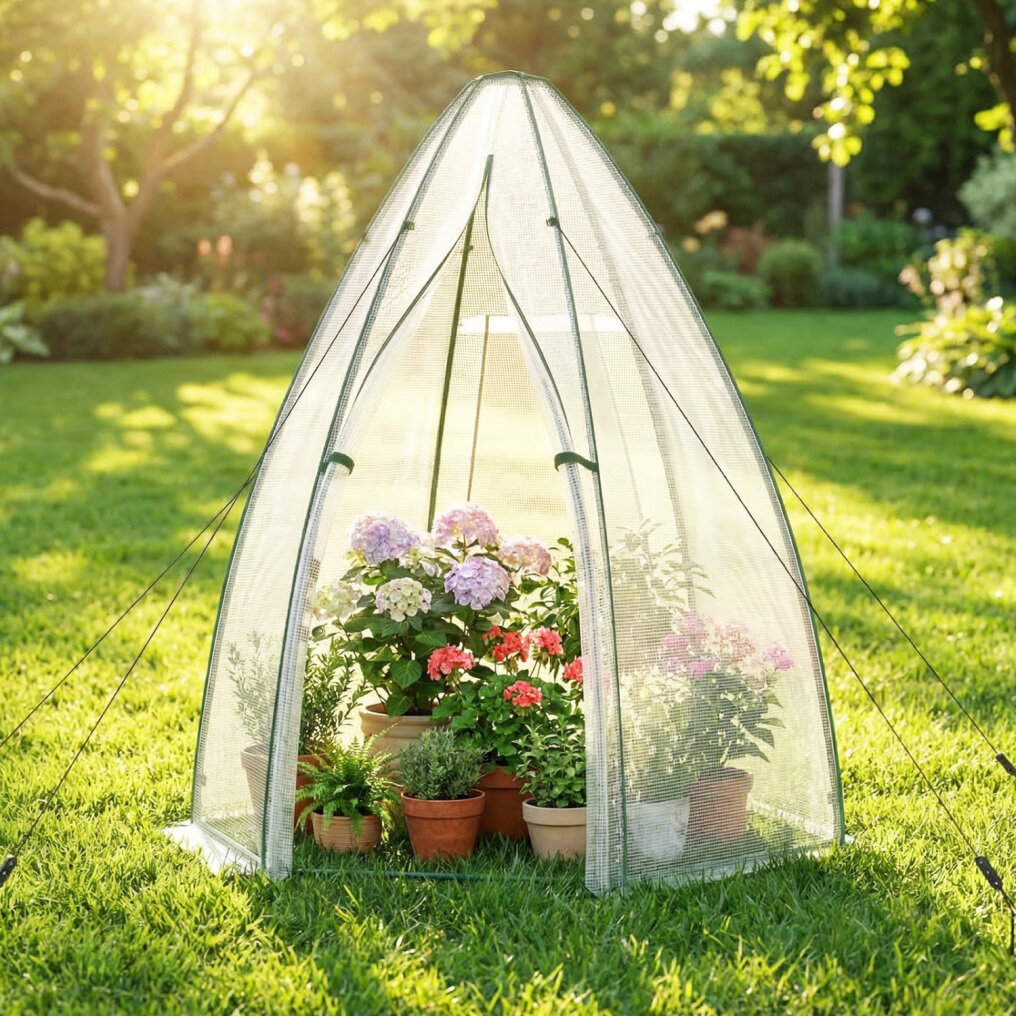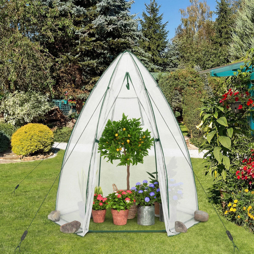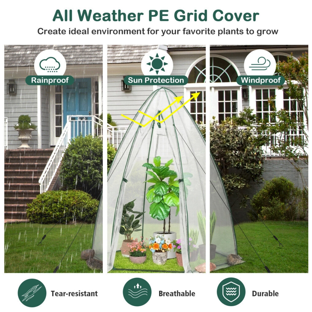 ● Durable and Sturdy Material: The protective cover of the mini greenhouse is made of premium PE, which is waterproof, tear-resistant, and durable, and it can protect plants from outdoor bad elements. Besides, the supporting frame is constructed of heavy-duty powder-coated metal, which is not easy to rust, peel, or chip, ensuring long-term outdoor use.