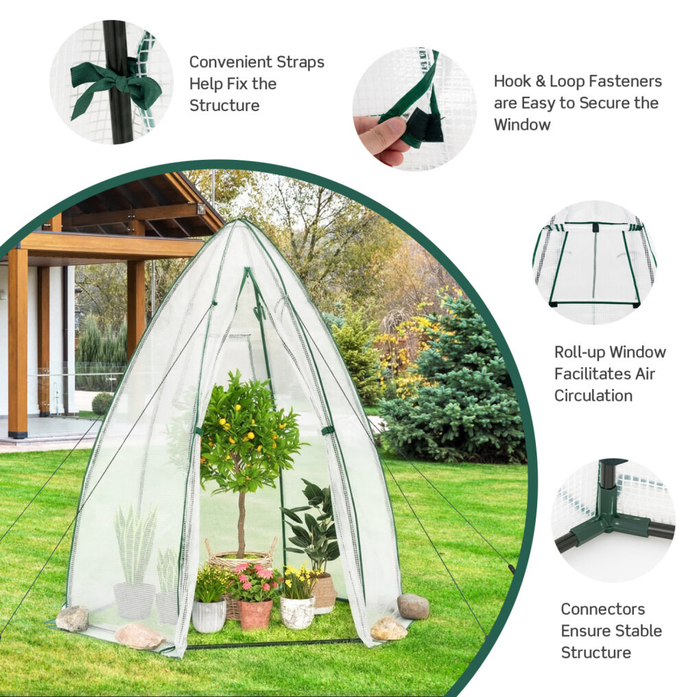 ● Zippered Door and Roll-up Window: The front zippered can be easily fixed by straps, providing easy access for fertilizing and watering. There exists a roll-up mesh window that offers better air circulation, accommodating different needs in various weather conditions. And the mesh design can prevent small animals.