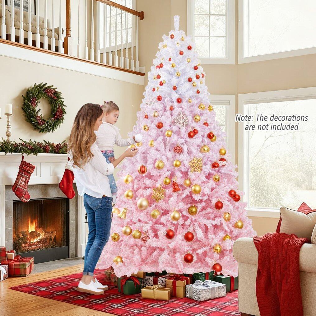 ● Striking Pink Gradient Design: This 5/6/7/8 ft snow-flocked artificial Christmas tree features a stunning gradient color - white to pink, bringing a refreshing twist and elegant touch to the festive season. It stands out with its stylish and eye-catching hues.
