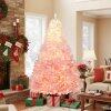 ● Striking Pink Gradient Design: This 5/6/7/8 ft snow-flocked artificial Christmas tree features a stunning gradient color - white to pink, bringing a refreshing twist and elegant touch to the festive season. It stands out with its stylish and eye-catching hues.