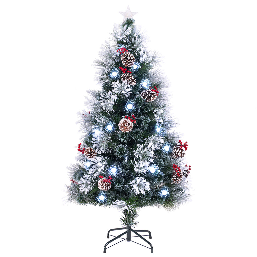 ● Illuminating Elegance: Illuminate your Christmas with 76 bright LED lights that are evenly distributed among the treetop star and 30 pine cone shell lights. To delight all your guests, the Xmas tree also provides a touch of magic from optical fibers.
