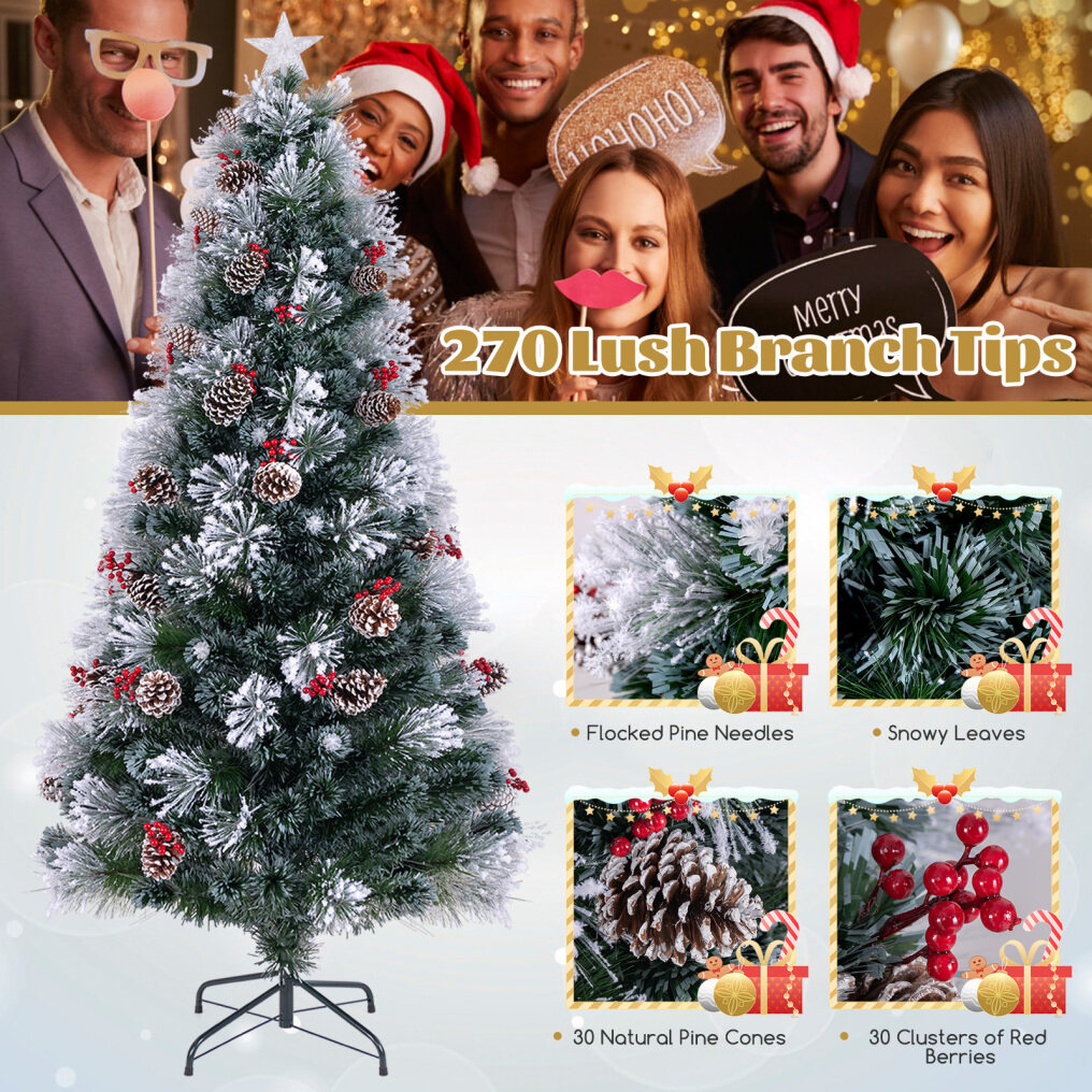 ● Winter Wonderland: The 7 ft Xmas tree stands out with 270 branch tips glistening with flocked pine needles. Besides, the tree boasts 30 clusters of lovely red berries and 30 realistic natural pine cones, creating a winter wonderland right in your space.