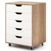 Made from engineered wood, it's extremely durable. Five large drawers offer plenty of storage space for documents, snacks, cosmetics, etc. Smooth rails and handles make them easy to open and close. The cabinet features four 360° swivel casters, making it mobile. These casters can be removed if necessary. Thanks to the clear instructions, the cabinet can be assembled quickly and easily.