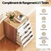 Large storage space: The interior dimensions of the 5 large drawers are 39 x 33 x 7.5 cm, providing ample space for snacks, cosmetics, office supplies, etc. The smooth metal rails allow for easy opening and closing. The top can also be used for devices such as printers or decorations.