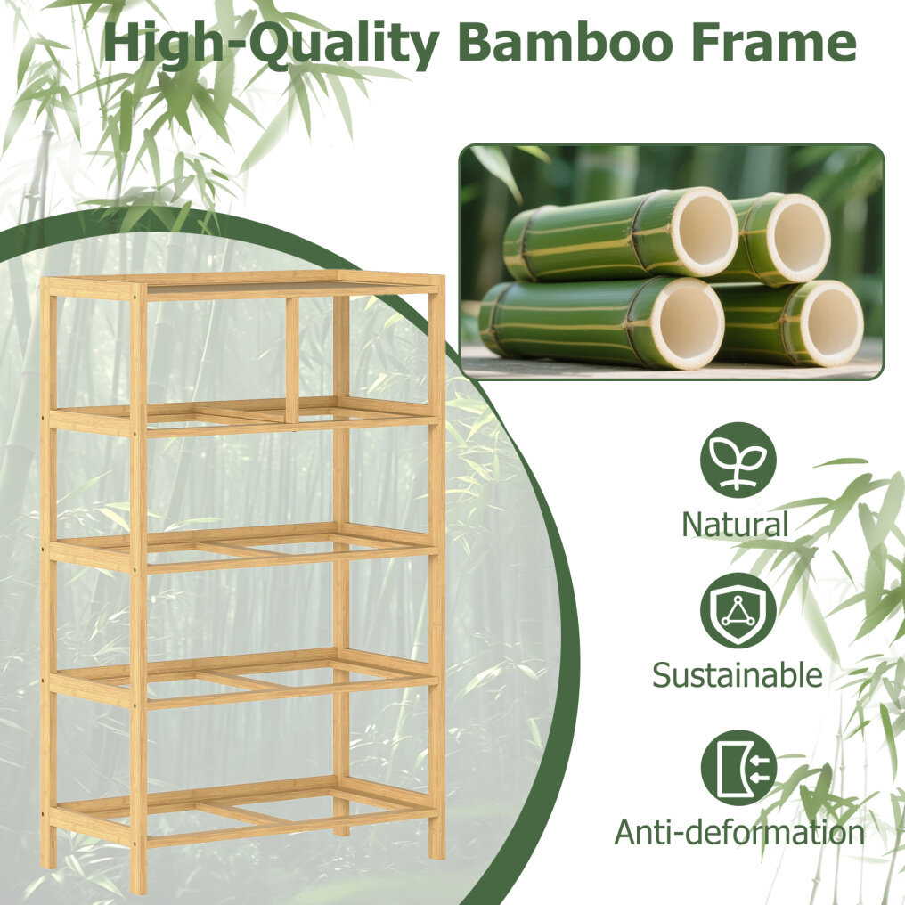 ● Generous Storage Capacity: This bamboo dresser features 5 drawers of varying sizes and a top shelf for varied storage needs. Each large drawer can hold 5-10 shirts or plants, while each small drawer can accommodate 15-20 pairs of socks, providing a convenient storage solution for your items.