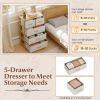 ● Considerate Details: The dresser comes with 5 foldable fabric drawers to simplify assembly process and storage. Additionally, the raised edges prevent daily items from falling while solid beech handle allows for easily opening and closing the drawers.