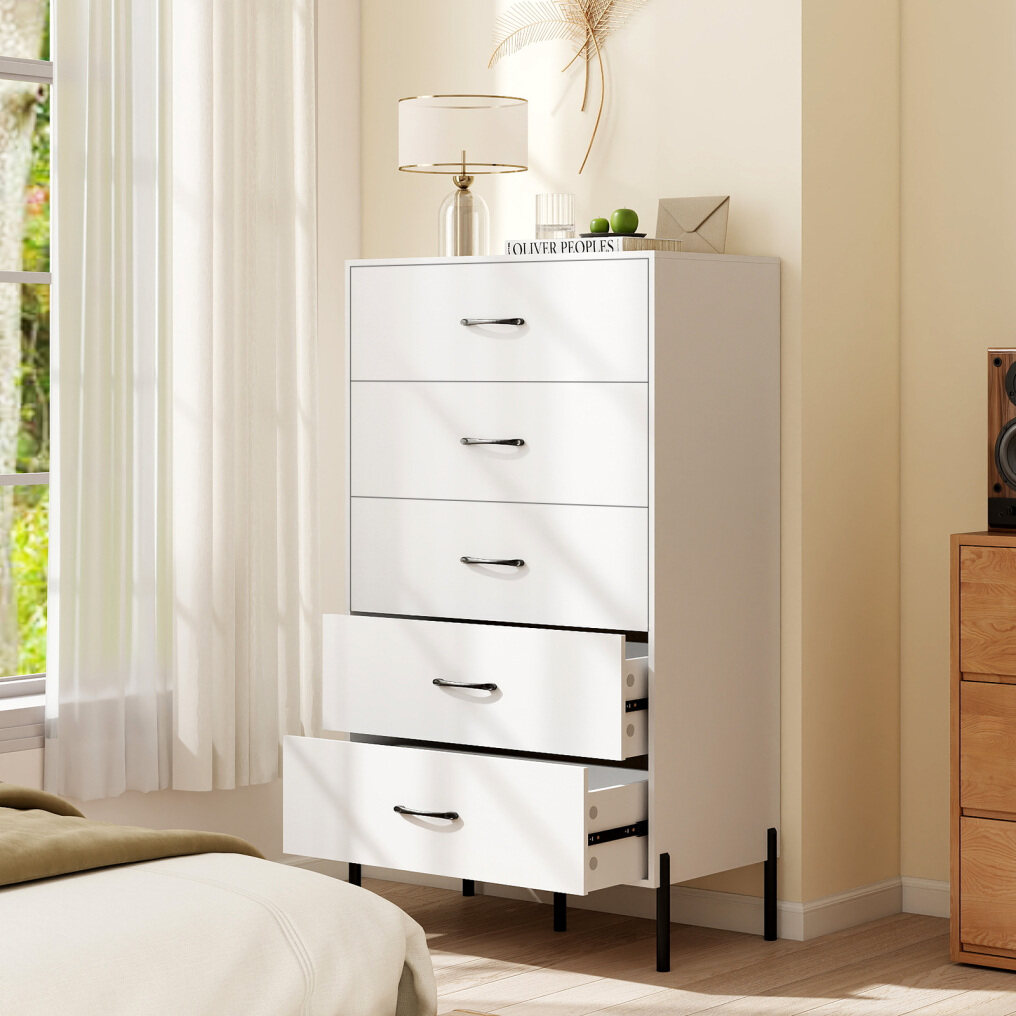 ● Roomy Storage Area: With 5 large drawers, this modern tall chest offers ample closed storage for books, clothes, office supplies, snacks, cosmetics, and more. It also features a wide top perfect for placing daily essentials within easy reach.