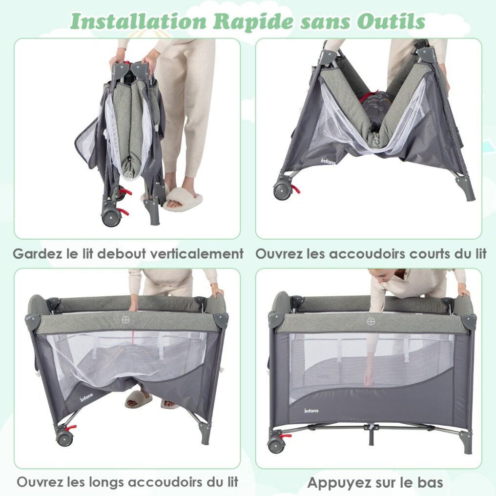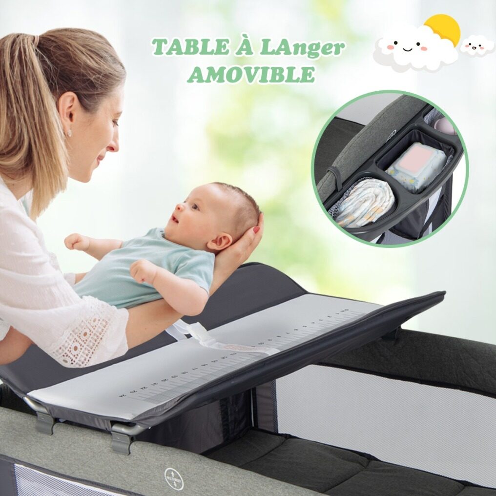 【Suitable Design】With the interlocking design, you can easily attach the diaper changer, toy holder, music box and storage basket. Then your little angle will lie down comfortably in the company of music and cute toys. In addition, when used as a playpen, the mesh enclosure protects children and the zipper design allows easy entry.