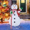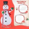 ● Easy to Set up and Store: No tools required! Just insert the poles with metal stand, then stretch up by hooking up the bottom ring with the hook on the stand, and insert the ground stakes if displaying outdoors. When not in use, the snowman can be folded up for easy storage.
