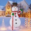 ● Stunning Christmas Decoration: The 5ft pre-lit snowman wearing a red holly decorated Christmas hat and red scarf raises hands with a warm smile, holding a Christmas cane to spread the joy of festive to you. The Christmas snowman in white and snowflake patters also echoes the winter scene in the outside.