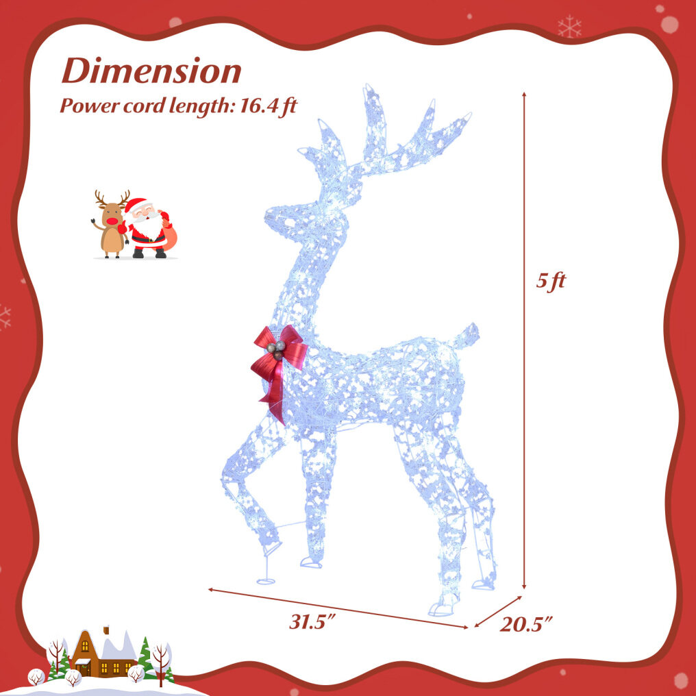 ● 100 Cold-White LED Lights: Equipped with 100 bright LED lights, this Xmas reindeer glows with a crisp, dazzling shine that is waterproof, energy-saving, and cool to the touch, creating a mesmerizing winter scene day or night.
