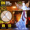 ● 120 Shining LED Lights: Illuminate your festive evenings with 120 cold white LED lights embedded in this celestial angel. These energy-saving lights cast a heavenly glow across your garden or living room, creating a magical holiday ambiance.