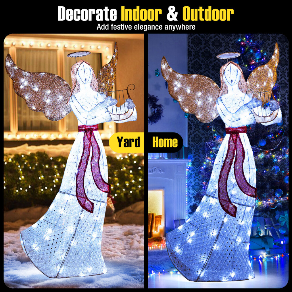 ● Appealing Angel Figure: Elevate your holiday decoration with this enchanting 5 ft angel. Adorned with iconic wings, a vivid harp, a flowing red belt and a divine halo, this angel embodies the spirit of Christmas, bringing serenity and joy to your home.