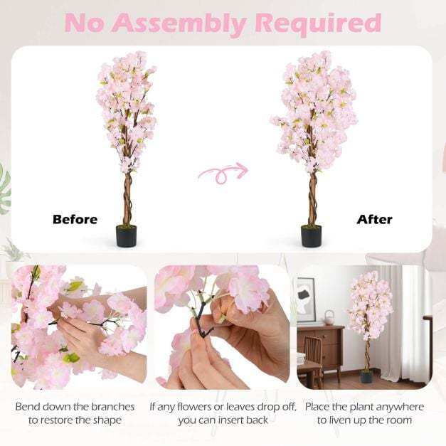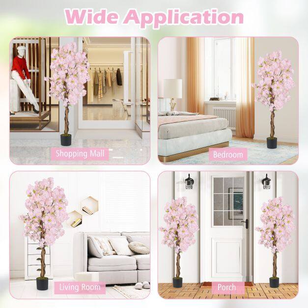 ● Reliable Materials: Crafted with premium polyester flowers and leaves, this faux tree maintains its color and texture for years without fading or shedding. The flowerpot is stabilized with built-in cement to ensure the tree remains upright and secure.