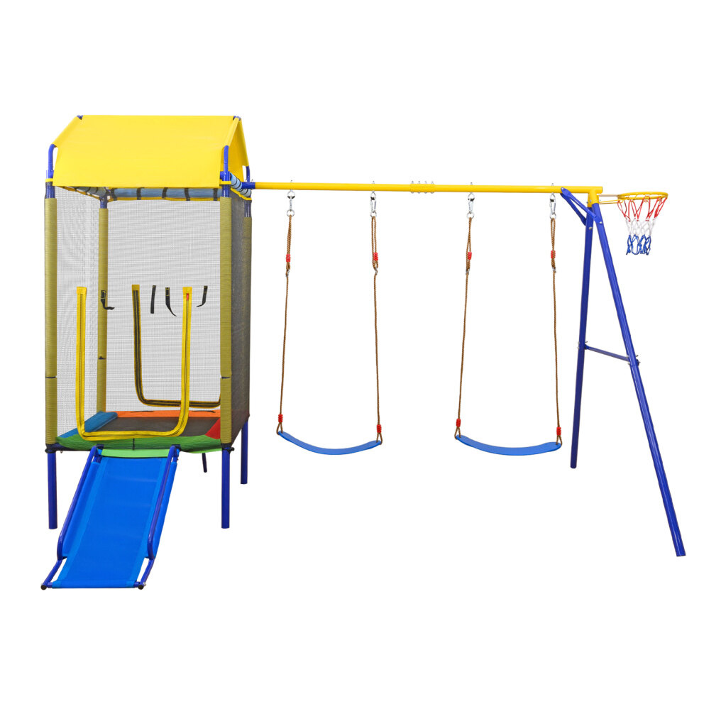 ● Hassle-Free Assembly & Family Fun: Designed with clear illustrated instructions and including all necessary tools, this swing set with trampoline is easy to set up in your backyard. Recommended for ages 8+ (swing capacity: 130 lbs, trampoline: 330 lbs), it is an ideal choice for families who value outdoor playtime and togetherness.