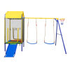 ● Ultimate Stability & Safety: Supported by a stable and safe A-frame swing stand, crafted from heavy-duty powder-coated metal pipes, this swing playset ensures hours of safe outdoor fun for your energetic kids. Moreover, it includes ground stakes to firmly anchor this playset on grassy backyards.