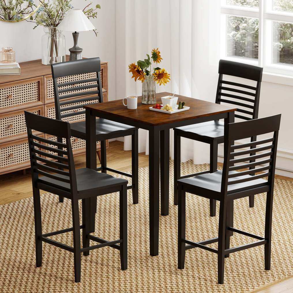 ● Complete 3-Piece Set: This dining set includes a counter-height kitchen table measuring 30" x 30" x 36"/75 x 75 x 91 cm (L x W x H) and 4 dining chairs measuring 18" x 20" x 41.5"/46 x 50 x 105 cm (L x W x H). Whether for intimate dinners, casual breakfasts, or leisurely drinks, the set can be a perfect choice.