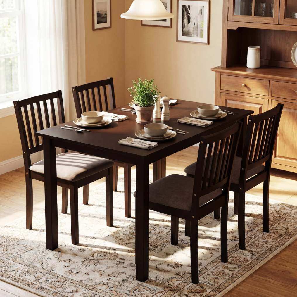 ● Complete 4-Person Set: This dining room set includes 1 rectangular table and 4 matching chairs, creating a coordinated place for up to 4 people. It works beautifully for family dining, morning coffee, snacks, or casual get-togethers.