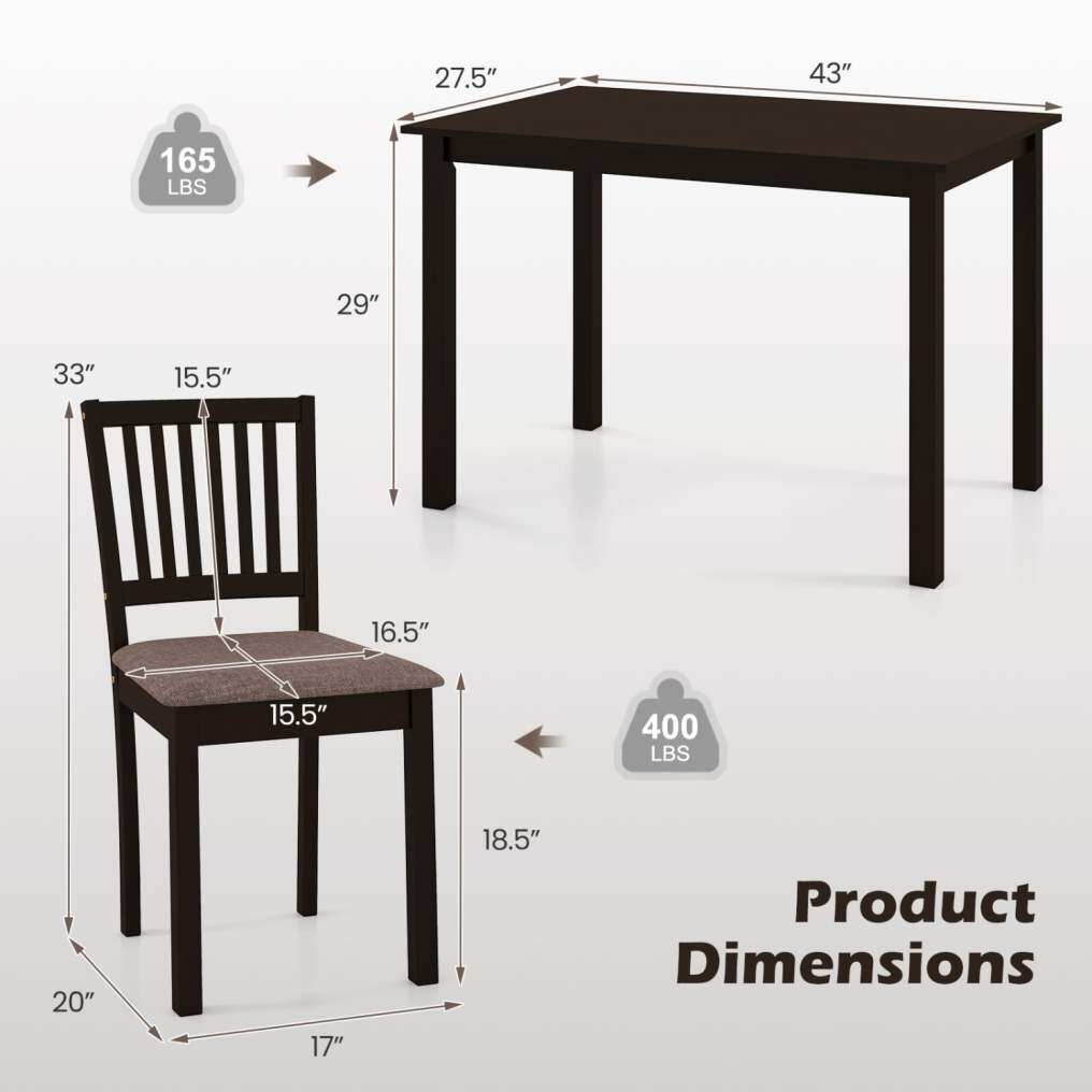 ● Reliable Wood Frame: Crafted with a solid rubber wood frame, the dining table set for 4 offers dependable stability for everyday meals and gatherings. The table supports up to 165 lbs, and each chair holds up to 400 lbs.
