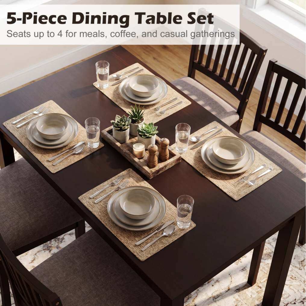 ● Classic Rustic Appeal: With its retro-inspired look and balanced silhouette, the 5-piece dining set brings warmth and character to a variety of interiors. It blends easily into kitchens, dining areas, breakfast nooks, and small apartments.