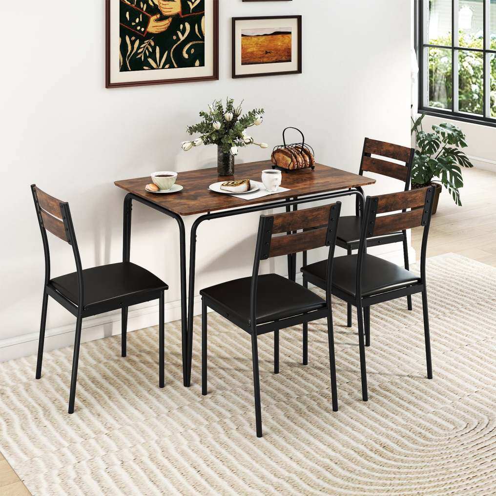 Compact Dining Solution: Ideal for limited spaces, such as small apartments or snug dining nooks, the 4 people dinette furniture set is designed to economize space. All 4 chairs can be efficiently slid under the table, maximizing room when the set is not in use.