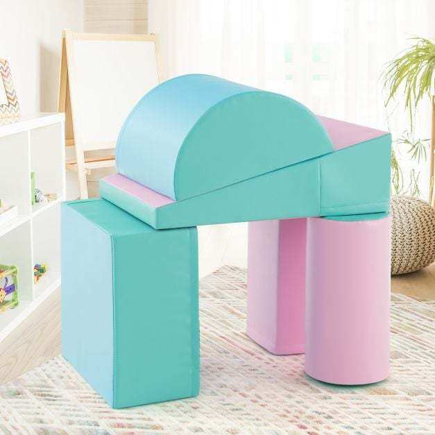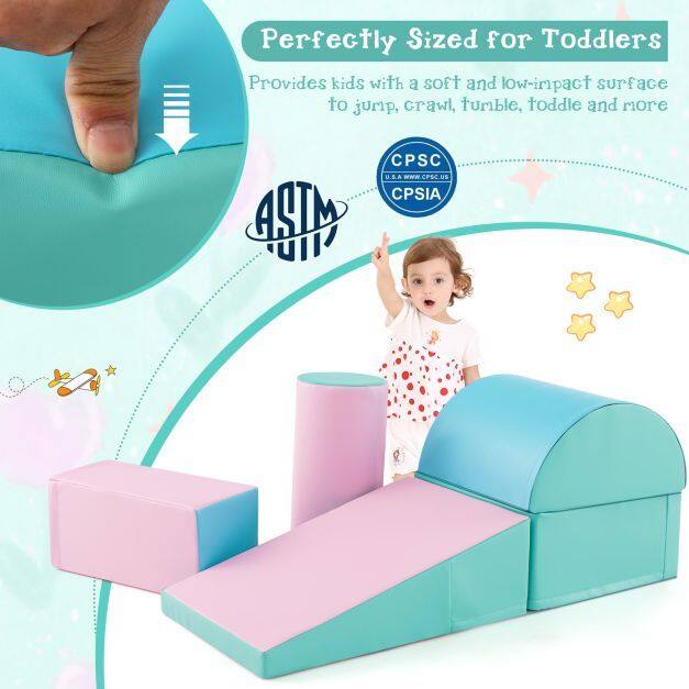 ● Easy Maintenance and Storage: The PU cover is waterproof and easy to wipe down. Plus, the zippered cover is easily removable for deep cleaning. The lightweight and stackable design allows for convenient and space-saving storage of this 5-piece foam playset.