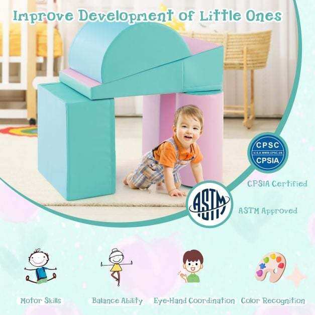 ● Safety Always Comes First: This foam playset is made of child-friendly materials, and it meets ASTM and CPSIA standards. There are no hard surfaces or sharp edges that could hurt your kids while playing.
