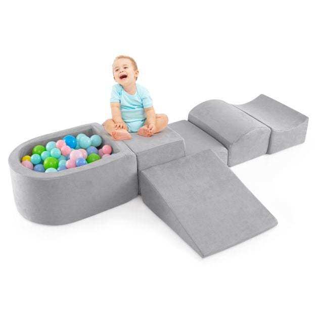 5-Piece Climbing Blocks Set: The soft playset consists of 1 slide, 1 step, 1 half-moon, 1 concave, and 1 ball pit for free DIY combination. Kids can make full use of their imagination to use the blocks to create a variety of shapes. The ball pit also provides kids with unlimited fun. Tips: The ocean balls are not included.