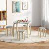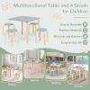 5PCS Kids Table and Chair Set: This kids furniture set has 1 square table and 4 round chairs, fulfilling kids' needs of studying, reading, playing and eating. Besides, cute outlook and multicolored design make the table and chair a real eye-catcher in kid's room, play room, daycare, kindergarten, etc.