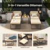 ● 3-in-1 Versatile Ottoman: This 5-piece patio furniture set comes with 2 multifunctional ottomans which can function as footrests, additional seats and side tables, bringing more convenience to you.