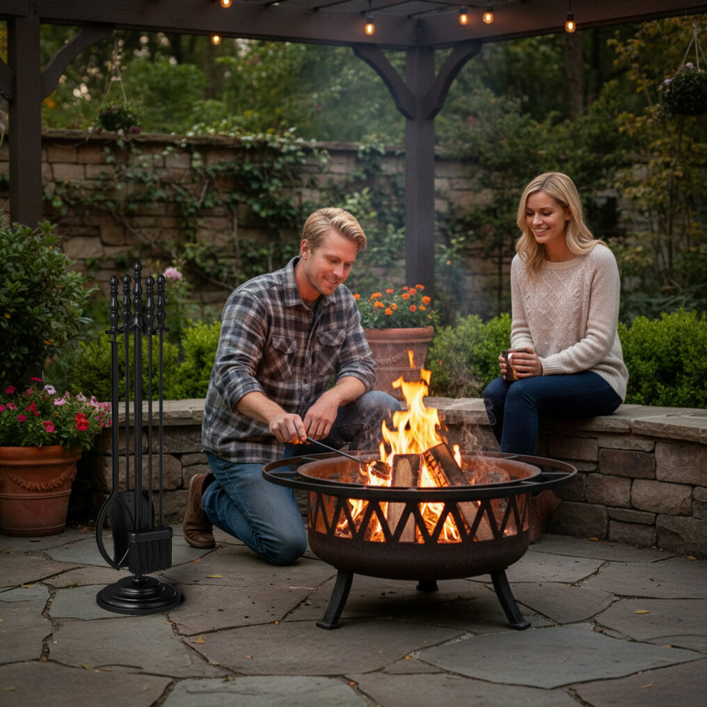 ● 4-in-1 Fireplace Tool Set: This versatile fireplace tool set includes a poker, a tong, a shovel, and a brush, all of which are essential for managing and maintaining your fireplace efficiently. The tools are designed to meet all your needs, making it easy to keep your fireplace in top condition.