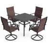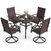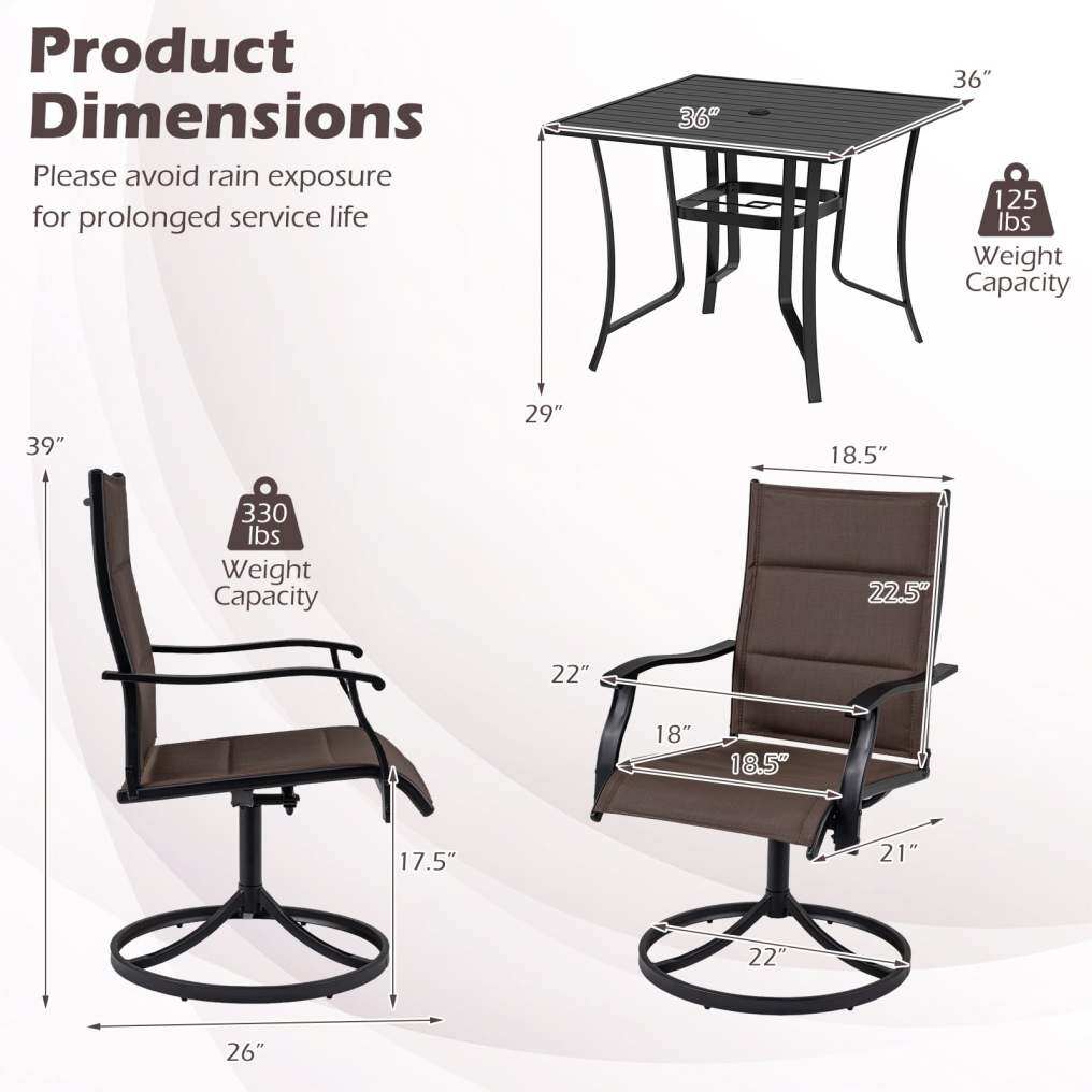 ● 360 Degree Swivel Chairs: This swivel chairs and patio table set includes 360-degree swivel seats with a gentle 15-degree rocking motion, offering flexibility and ease. These features allow guests to engage in conversation without the need to reposition their chairs manually, enhancing the overall dining and social experience.