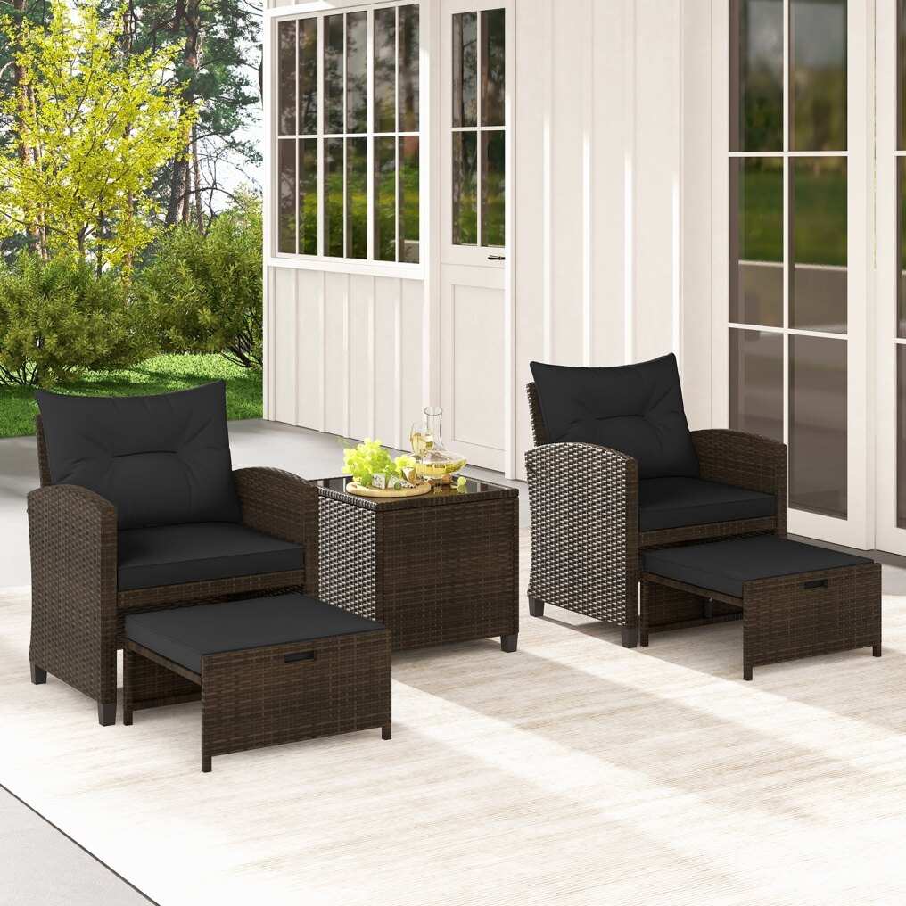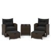 ● Well-Crafted Rattan Surface: This 5-piece patio furniture set boasts well-woven mix brown PE rattan which is long-lasting and anti-fading for long-term use. Moreover, the rattan surface is also elegant to make the whole set eye-catching.