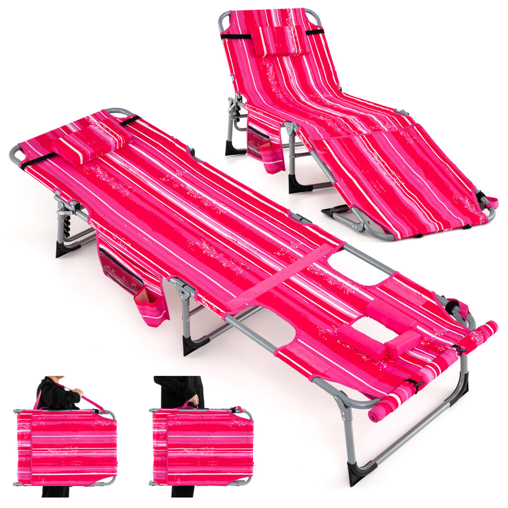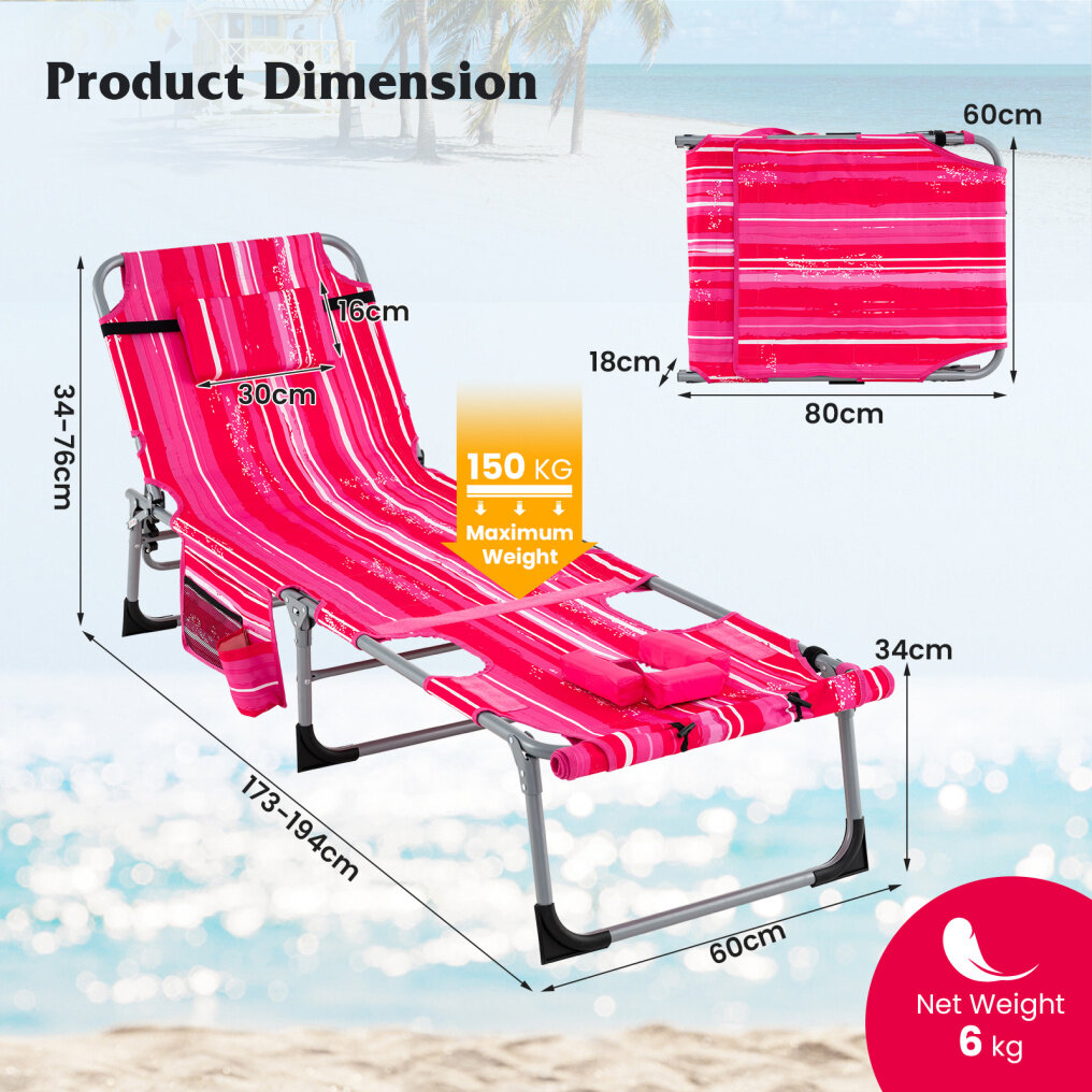 ● 5 Adjustable Positions: With a 5-level adjustable backrest and 2-level adjustable footrest, the beach lounge chair will offer you great flexibility to lie flat, recline or sit up. Consequently, you can devote yourself to reading, sunbathing and napping in the most comfortable position.