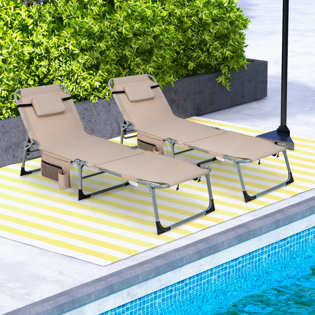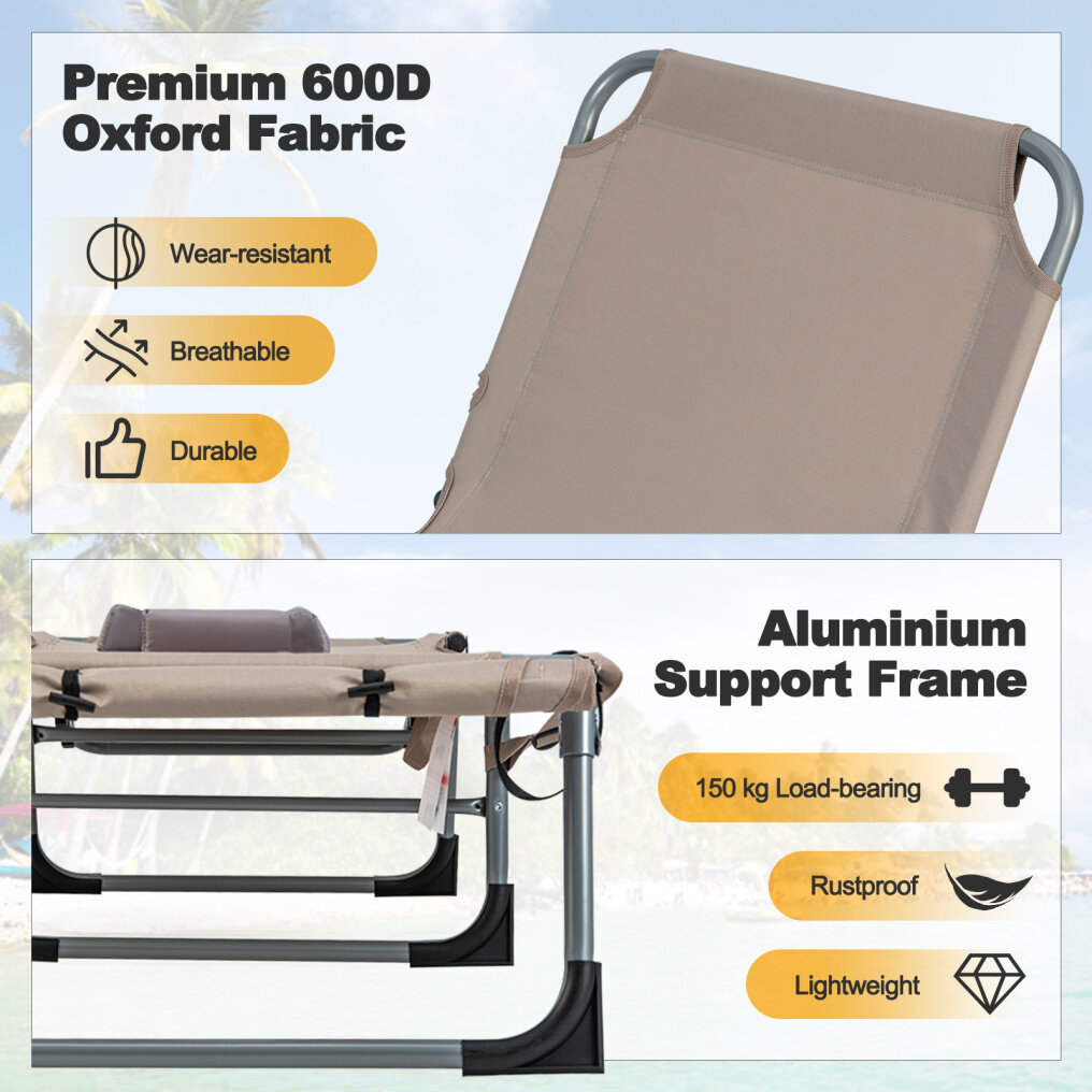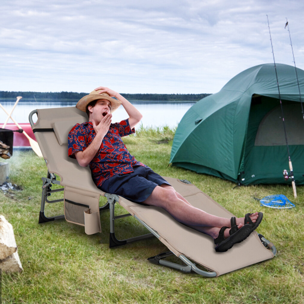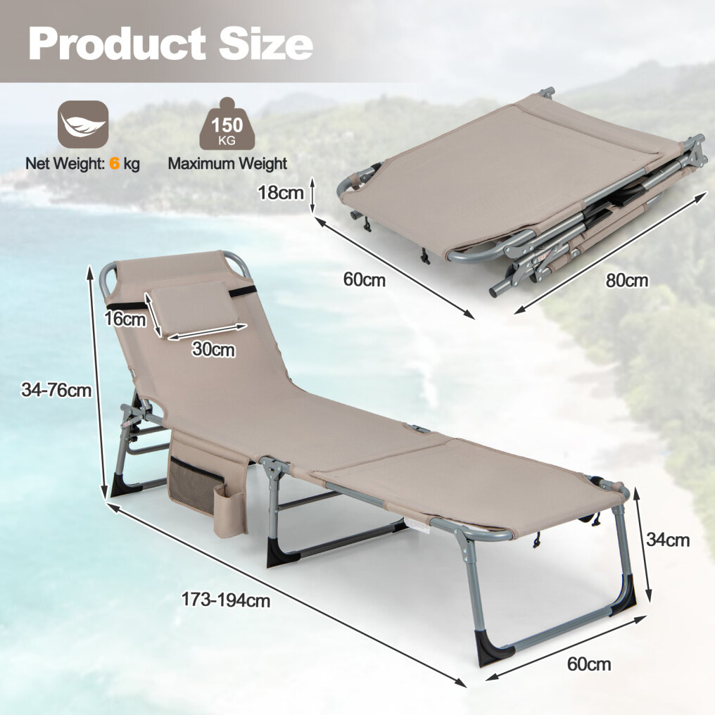 ● 5 Adjustable Positions: With a 5-level adjustable backrest and 2-level adjustable footrest, the beach lounge chair will offer you great flexibility to lie flat, recline or sit up. Consequently, you can devote yourself to reading, sunbathing and napping in the most comfortable position.