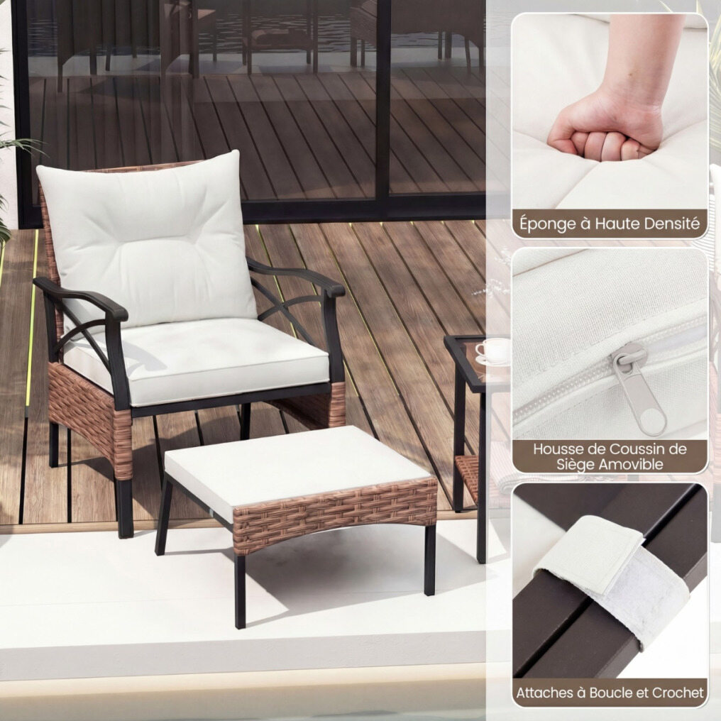 【Selected PE Rattan】This patio furniture set is made of fade-resistant, sun-protective PE rattan, promising superior outdoor performance. Handwoven, it ensures these patio chairs will remain timeless for years to come.