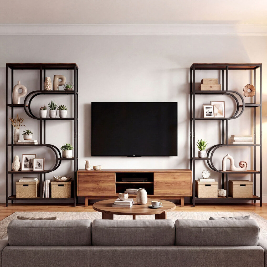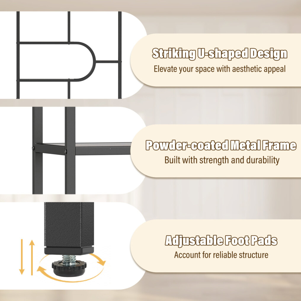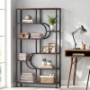● Distinctive Geometric Bookshelf: Showcasing a sleek u-shaped design, this 5-tier bookshelf brings a contemporary and refined touch to your room. Its eye-catching shape creates a stylish centerpiece that blends well with interior decorations.