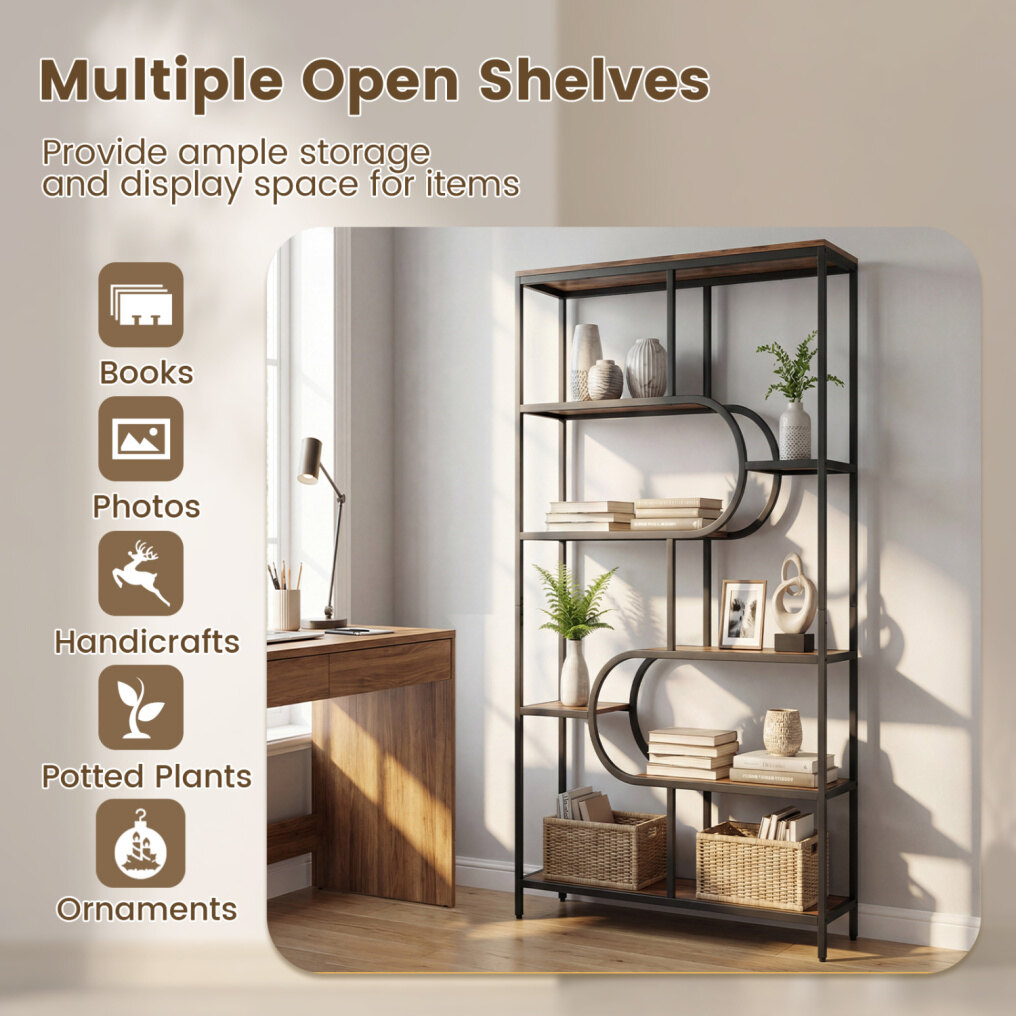 ● Ample Storage & Display Space: Featuring multiple spacious shelves, this bookcase provides generous space for books, photos, handicrafts, potted plants and ornaments. Its multi-level design maximizes vertical storage while keeping items organized and accessible.