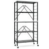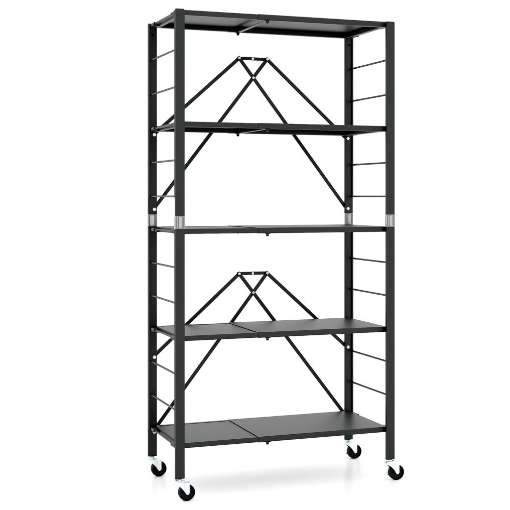 5-Tier Foldable Storage Shelf with Wheels-Black