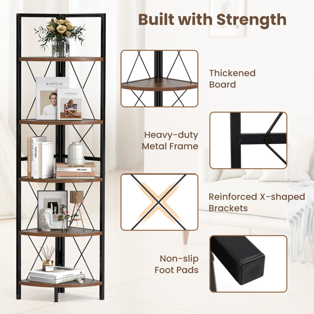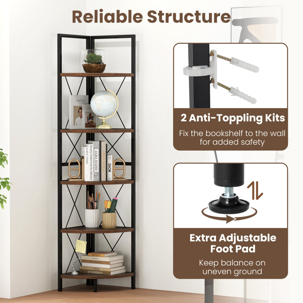 ● Optimized Space Usage: This 5-tier bookshelf features right angle design that maximizes space utilization and fits snugly into corners. Additionally, this 63" tall corner stand provides ample vertical storage without taking up much floor space.